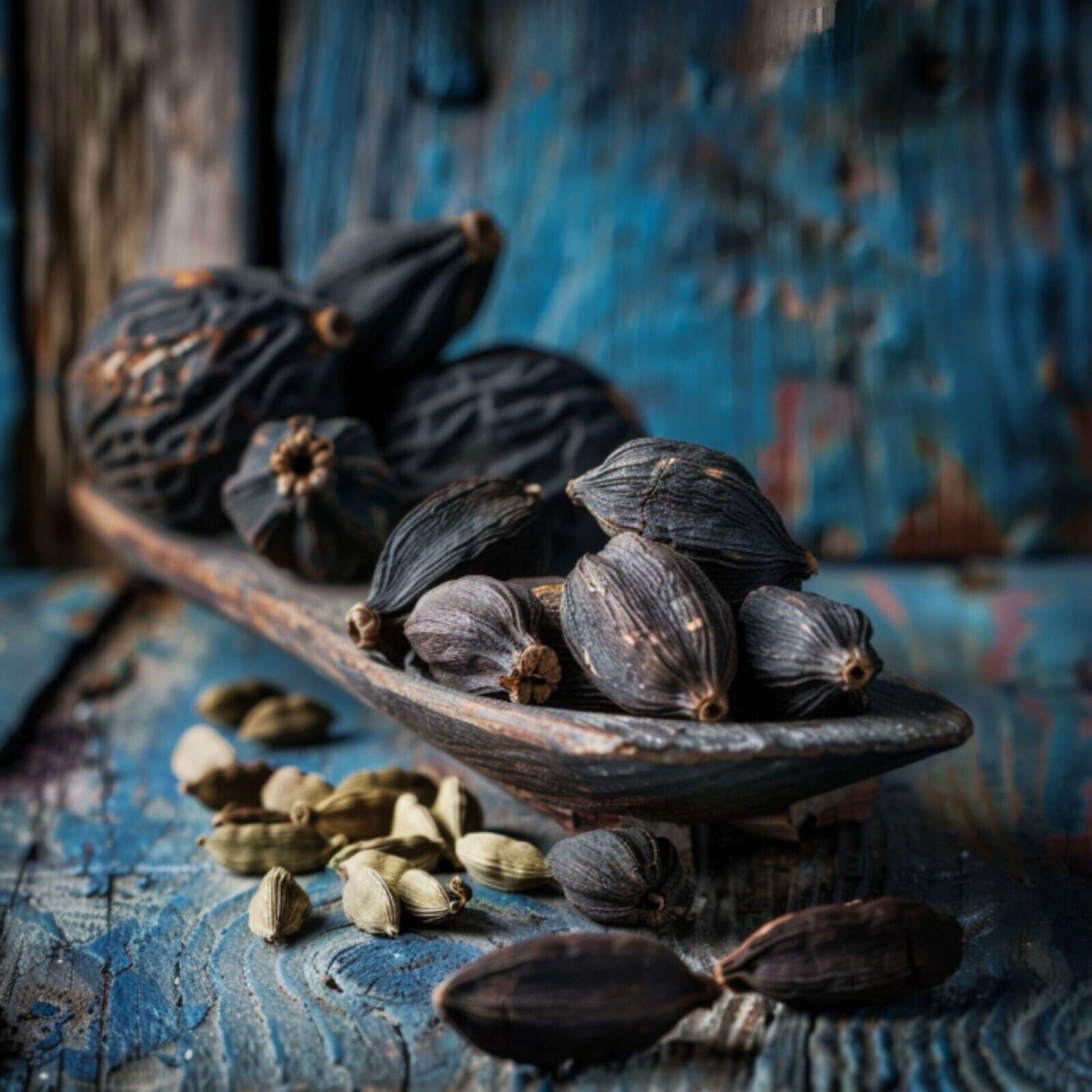 It is native to Nepal, it is much larger in size than green cardamom, which is why it is commonly known as Big Cardamom. In Nepal it is known as Kali Elaichi or Badi Elaichi. Inside it has small round seeds that contain the camphorous note, while the smoky note is in the black cardamom peel and this aroma is acquired due to drying. Although cardamom is called green cardamom, they are two different species and do not have the same flavor or aroma.